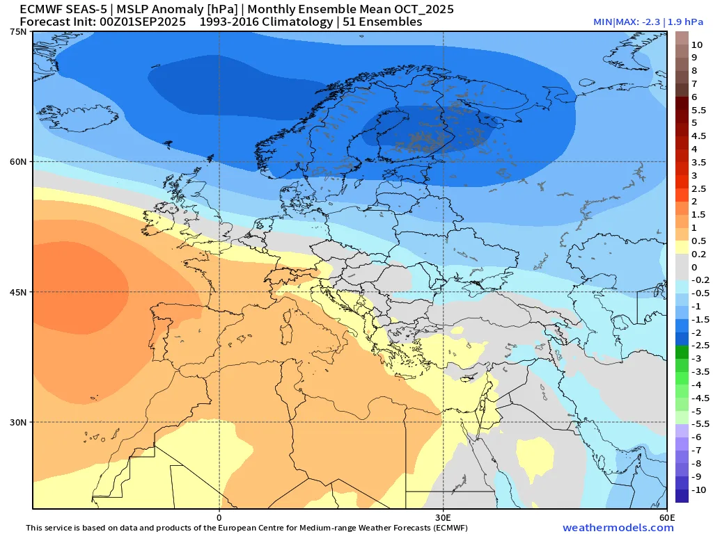 Atlantik üzerinde etkin olacak Azor Yüksek Basıncı, zaman zaman batıya kayarak kuzey bölgelerinde alçak basınçların güçlenmesine yol açacak. Bu nedenle Kuzey Avrupa ve Birleşik Krallık bol yağış ve kuvvetli rüzgârlarla karşılaşacak. Sonbaharın ikinci yarısına doğru kuzey dağlarında yoğun kar yağışları bekleniyor.