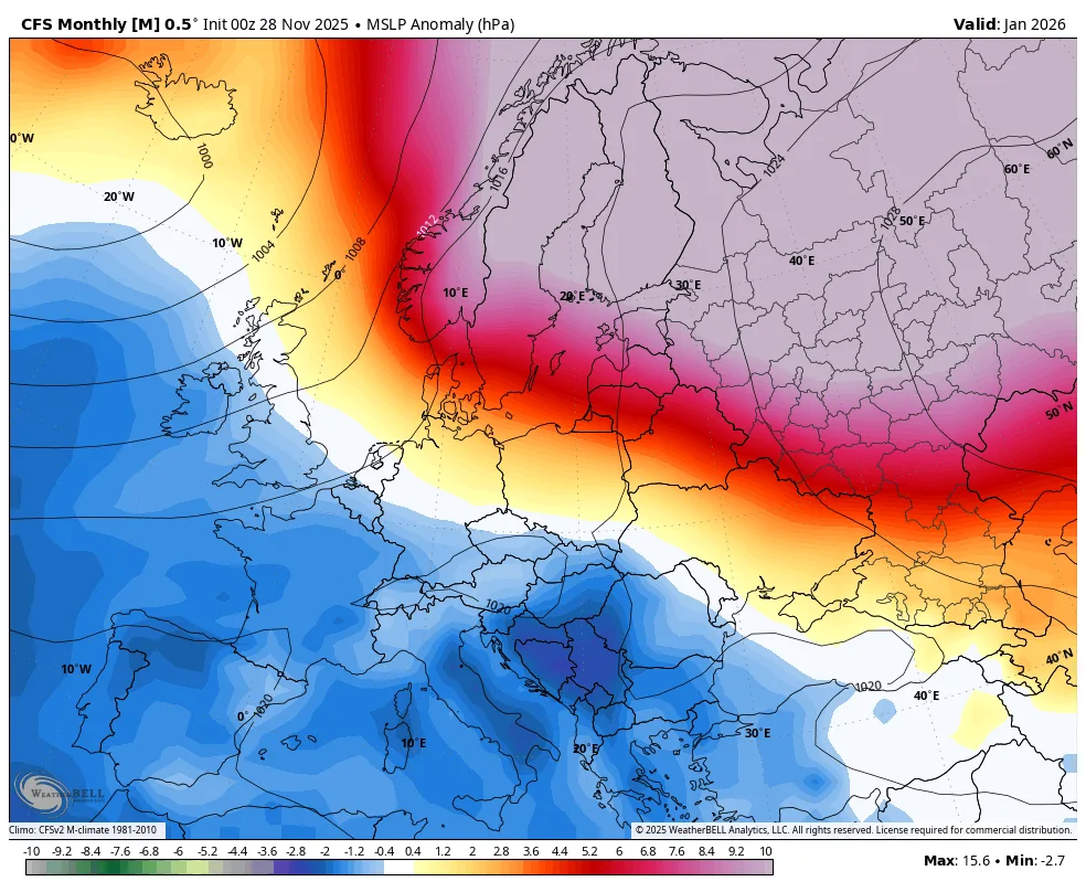 - Blokaj Oluşumu: İskandinavya üzerinde bir Yüksek Basınç alanının (Scandi High) oluşması ve bunun Sibirya Yüksek Basıncı ile birleşme eğilimi (“Köprü kurma”), Atlantik’in ılık havasını bloke edecektir.